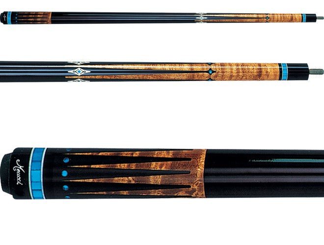 The High Pro 03 now includes The Pro Shaft which features a 12.5mm Ultra Skin Medium tip. The forearm uses stained Birdseye Maple with Four Ebony Points Inset with White and Blue Acrylic Diamonds Rings. The sleeve is similar in design sporting stained Birdseye Maple Blocks with Ebony points inset with Blue Acrylic Circles. The wrap is black lacquered Irish Linen (wrap-less feel).