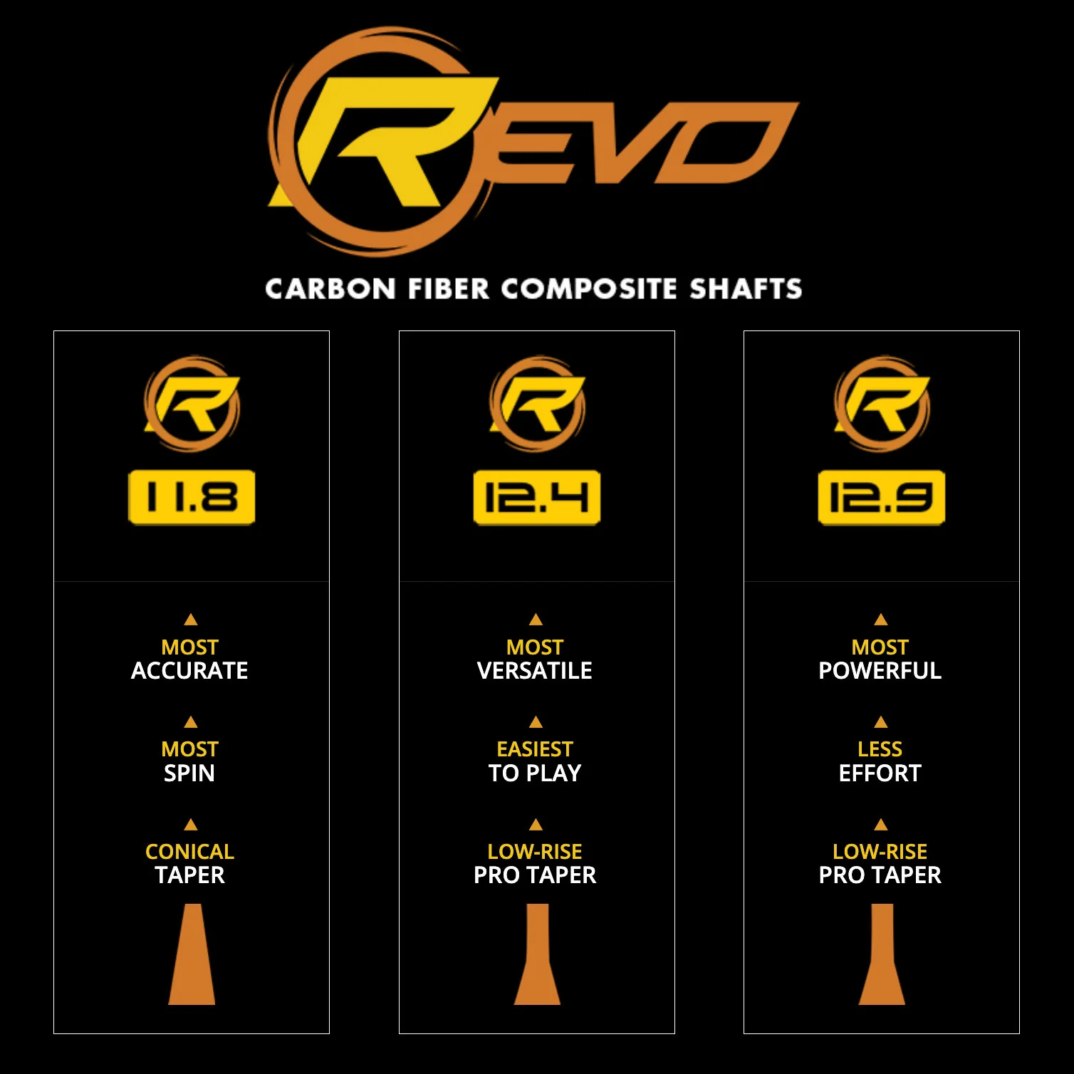 Shaft Selection: REVO 11.8, 12.4 or 12.9