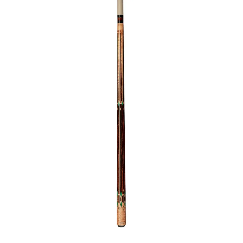 The Pure X Golden Birdseye Maple/Cocobolo & Green Malachite Wrapless Cue is a high-performance pool cue designed for serious players. Featuring a traditional 5/16 x 18 joint, this cue offers exceptional durability and longevity. The Pure X HXT Low Deflection technology shaft drastically reduces cue ball deflection, ensuring precise shots and consistent control. The Kamui Black Soft Tip provides superior grip, spin, and durability. The HXT High-tech low deflection ferrule with a special lightweight polymer core further enhances accuracy and performance. This cue features a sleek wrapless handle, a wood butt cap, and a stunning antique golden-stained Birdseye Maple forearm and butt with floating split graphic Rengas points, green and natural accent diamonds. The Pure X Golden Birdseye Maple/Cocobolo & Green Malachite Wrapless Cue is a top-of-the-line choice for players who demand the best in performance and durability.